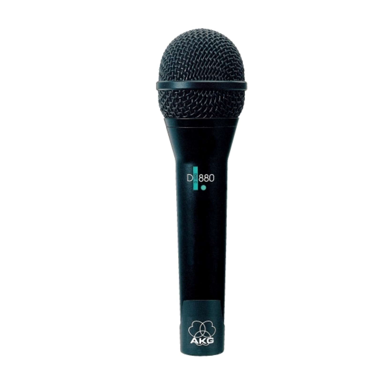 The AKG Model D 880 is a rugged dynamic supercardioidmicrophone intended for on-stage vocal pickup. Itssupercardioid pattern is uniform with frequency, andresponse has been boosted at mid and high frequencies forcrisp instrumental pickup and improved speech intelligibility.The microphone has a heavy duty, dent resistant spring-steelwindscreen with an integral pop filter for effectivesuppression of breath noise. The inner pop filter can beremoved for cleaning or for replacement. The microphoneincorporates two important AKG developments: In the”Tiefzieh” Varimotion System™ the diaphragm thicknessvaries from 20 microns at the edge to 40 microns at thecenter. This distribution of mass produces extended bassresponse, virtually eliminating the need for a tuning resonator.In addition, the Doubleflex™ mounting system used with thecapsule assembly places the primary resonance of themoving system to well below the audible range, resulting inexcellent isolation of handling and cable induced noises. Thelight-weight body is die cast zinc alloy and has a dark mattefinish for minimum reflection and glare.
