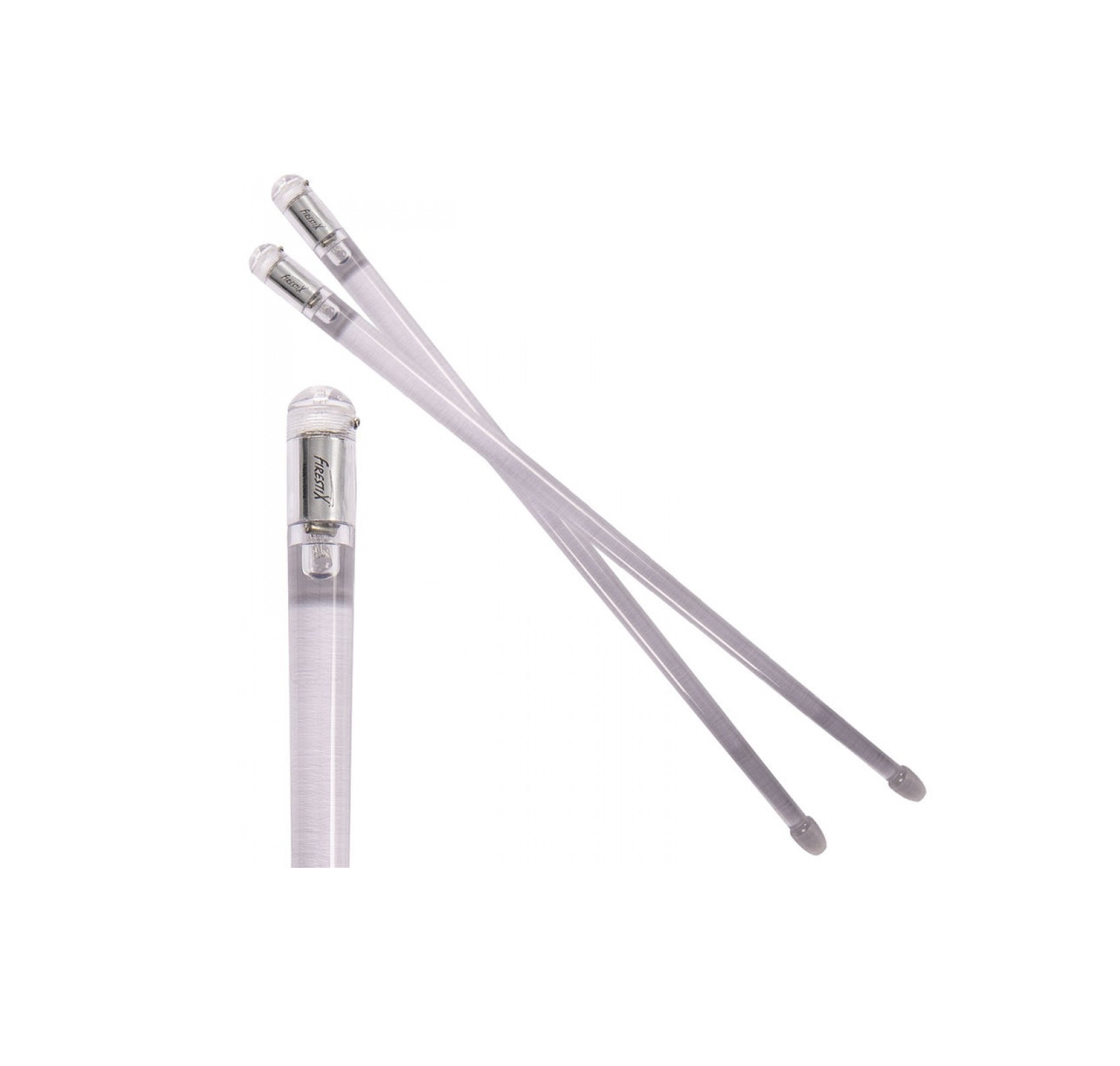 Firestix are lightweight, robust and made from immensely strong, impact and shatter resistant, clear LEXAN polycarbonate plastic (22 times stronger than tempered glass). Firestix light up at the end in use once you start tapping and shine down the whole stick for a fanastic visual effect! Modelled to the size, balance and style of 5A drumsticks, each stick has screw-in end caps for quick and easy battery changes.