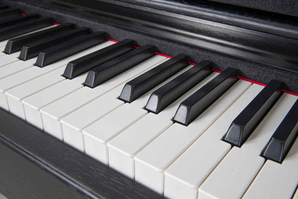 - Concert Pianist keyboard, 88-key hammer action, weighted in zones, with Ivory Touch