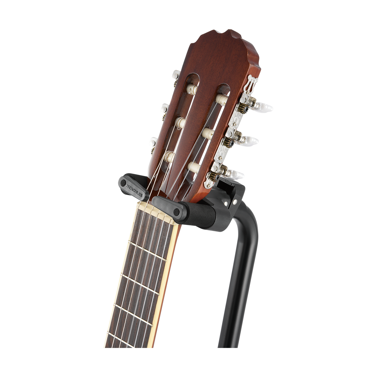 The HERCULES Guitar Stand GS414B PLUS features the Auto Grip System (AGS) yoke, Instant Height Adjustment Clutch and Specially Formulated Foam (SFF) padding on all contact points.
