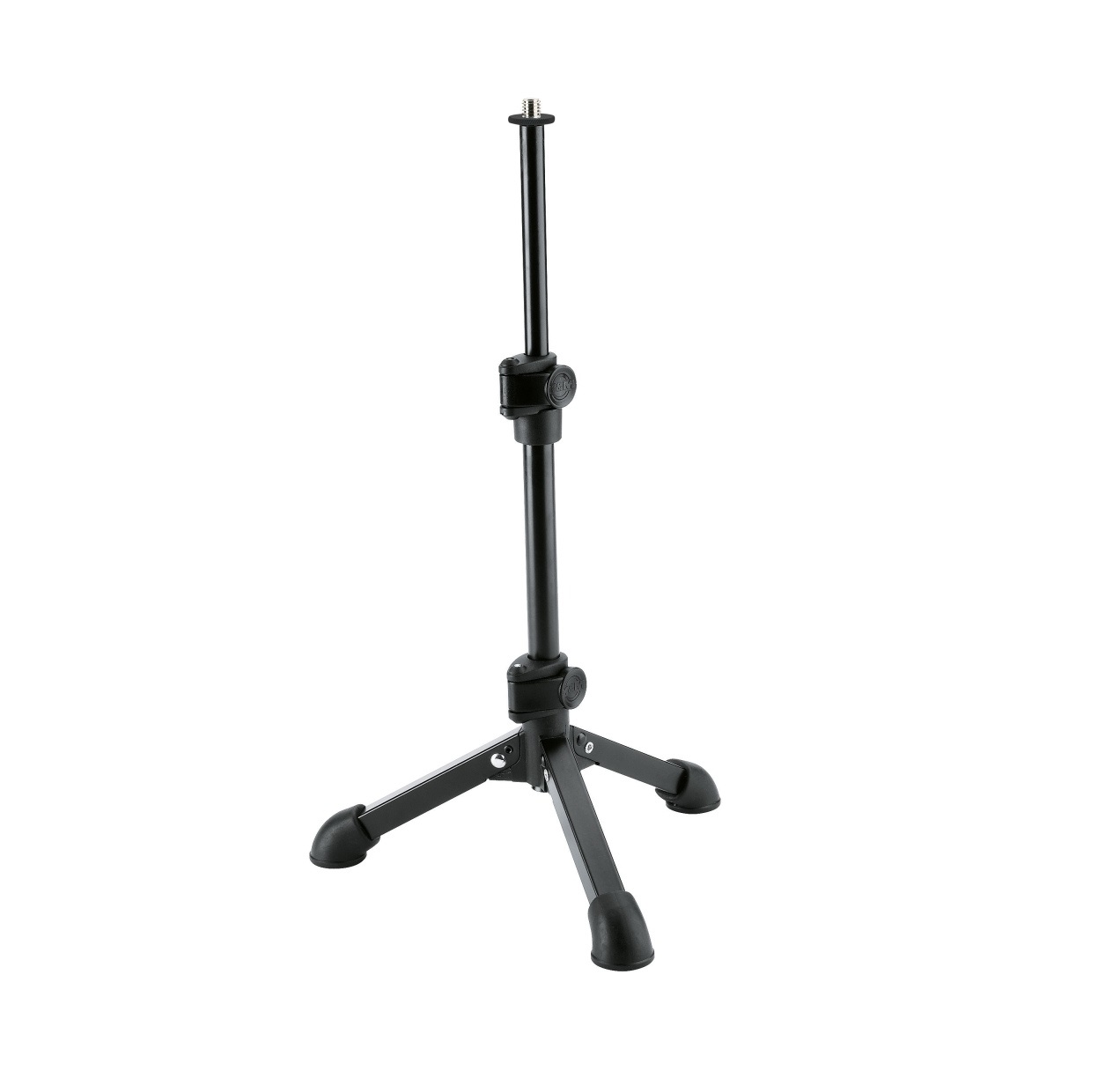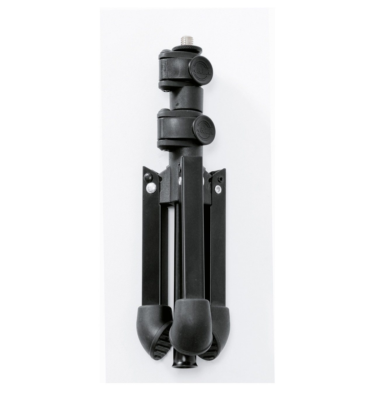 The telescopic microphone stand with a 3/8“ threaded connector is extremely versatile. Its height can be adjusted from 230 to 400 mm using the practical clamping lever. This light-weight three-legged stand with folding legs is suitable for mobile operation. The robust foot end caps provide stability and reduce undesirable transmission noise.