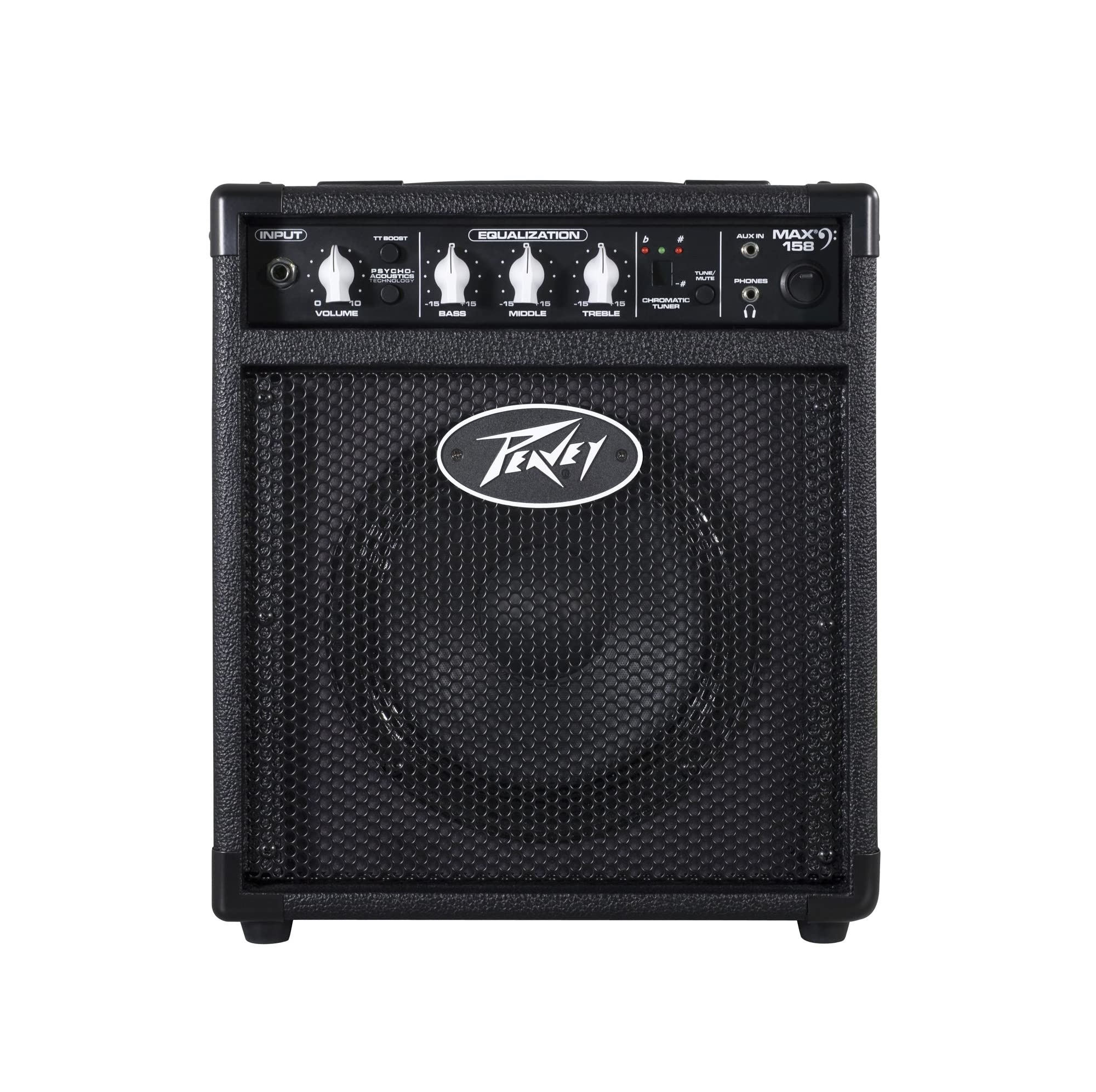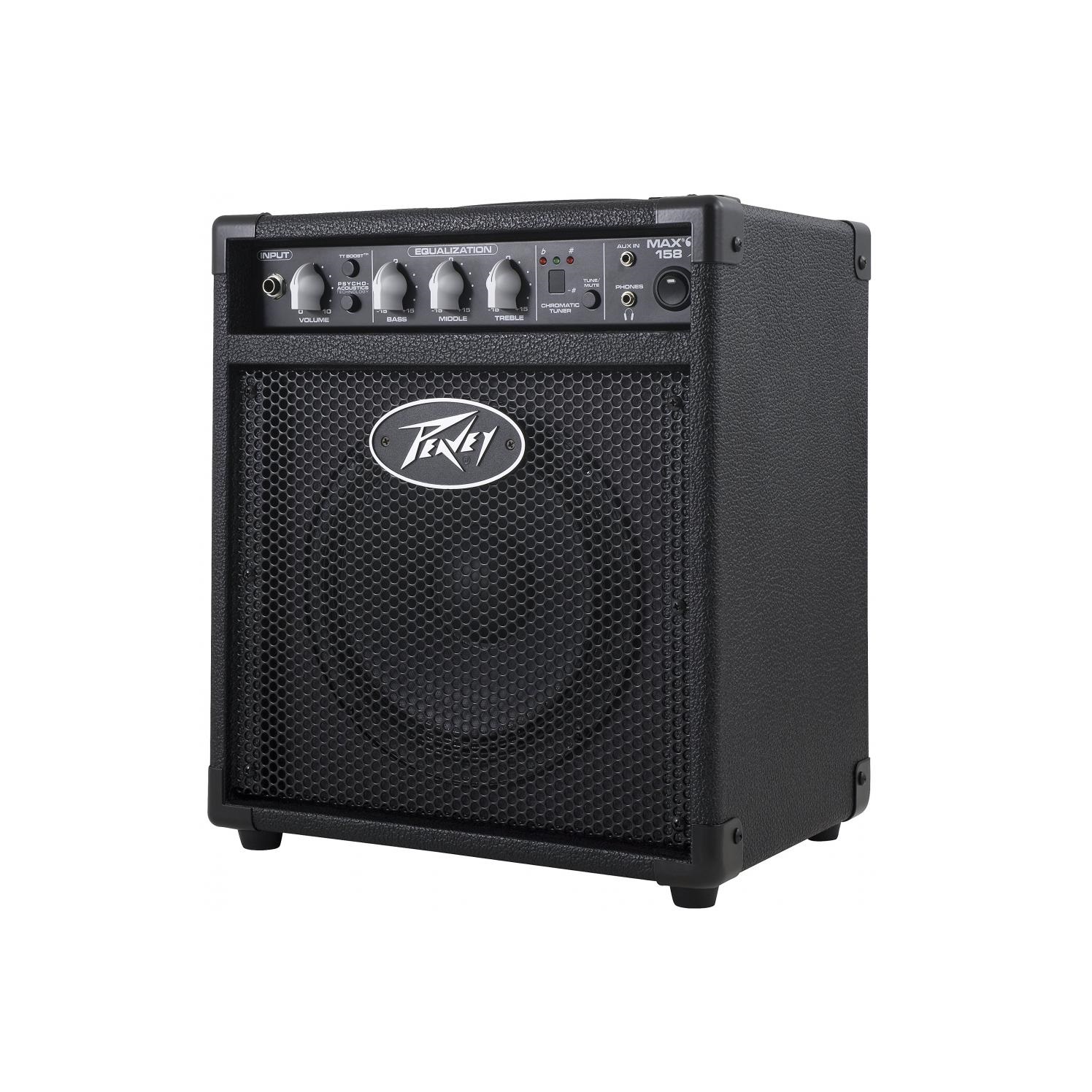 The Max 158 bass combo amp is a 20 watt 1×8″ bass practice amp loaded with features, including 1/4″ input and Volume with Transtube distortion boost and psyco-acoustic low end enhancement, a 3-band EQ, chromatic tuner and 1/8″ jacks for phones output and auxiliary input. The Max 158 also includes Peavey-exclusive DDT speaker protection.