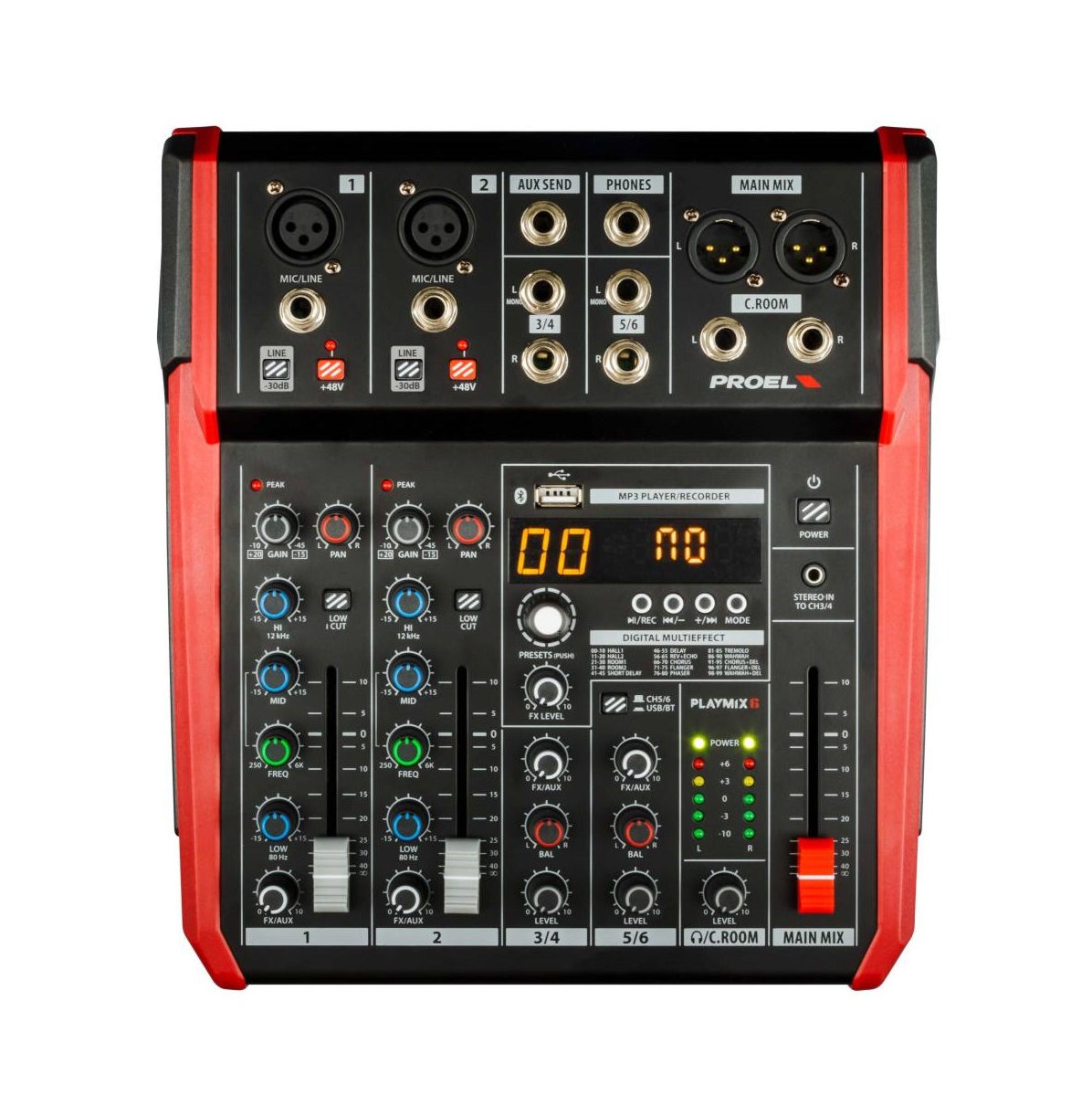 PLAYMIX is a series of mixers created by PROEL to offer in a very compact and stylish package a high inputs density, a full set of features and a superior audio quality, at a very convenient price point.