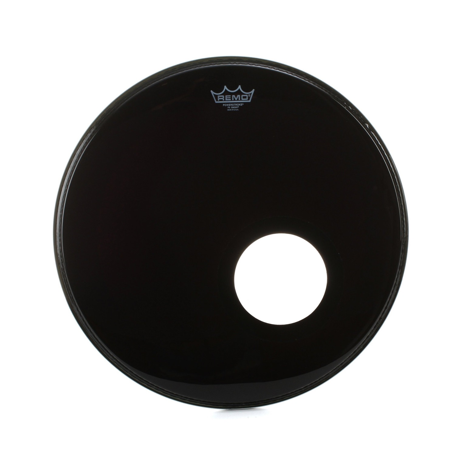 The Ebony® Powerstroke® 3 features a thin underlay at the outer edge of the head to subtly dampen unwanted overtones. Ebony® P3 heads are best known for use as a resonant bass drum head. This creates perfect balance of mid and low tones that has quickly made Ebony® Powerstroke® 3 one of Remo’s most preferred resonant bass drumheads.